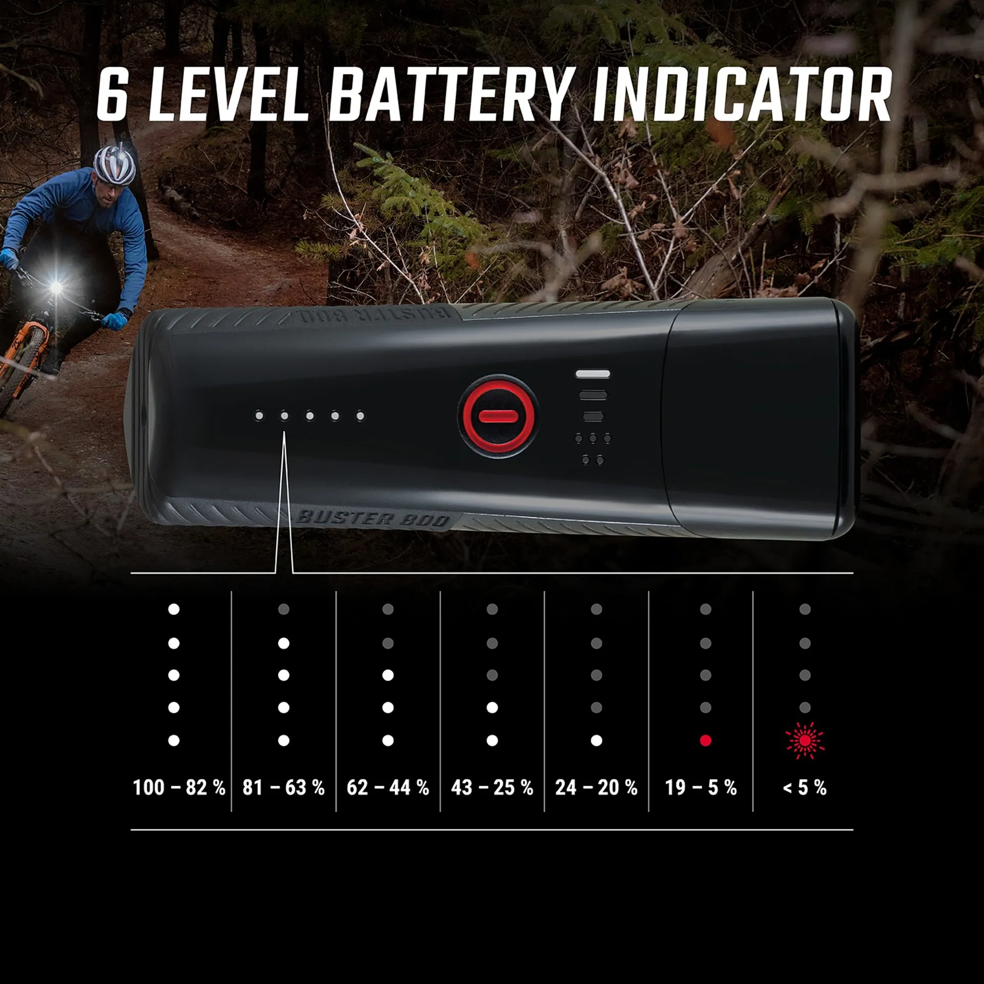 Weighing only 150 grams (including bracket), the Buster 800 HL is compact yet robust. It’s splash-resistant to IPX4 standards, ensuring reliable performance in rain, mud, and all weather conditions.