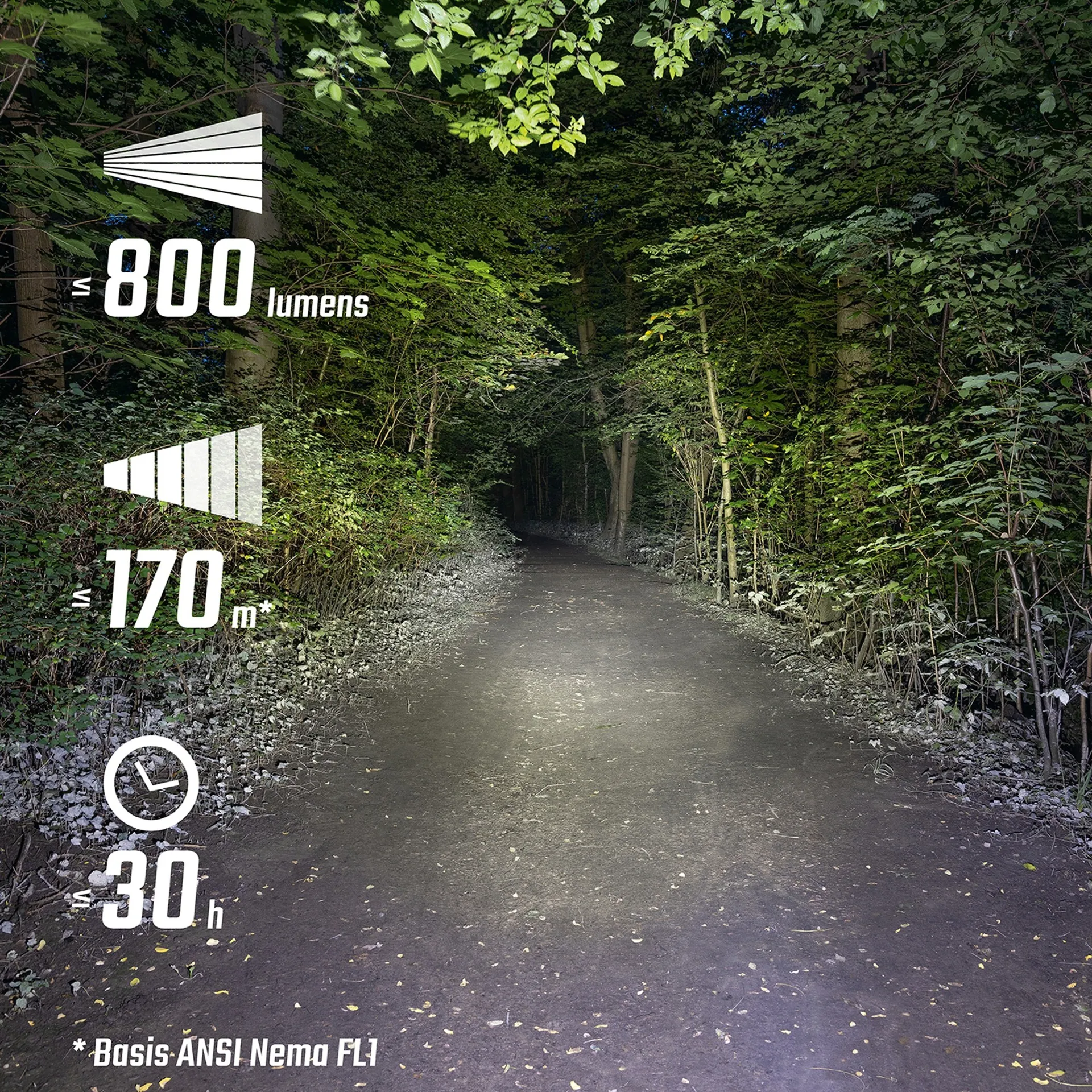 Bright 800-Lumen Output & 170-Metre Range