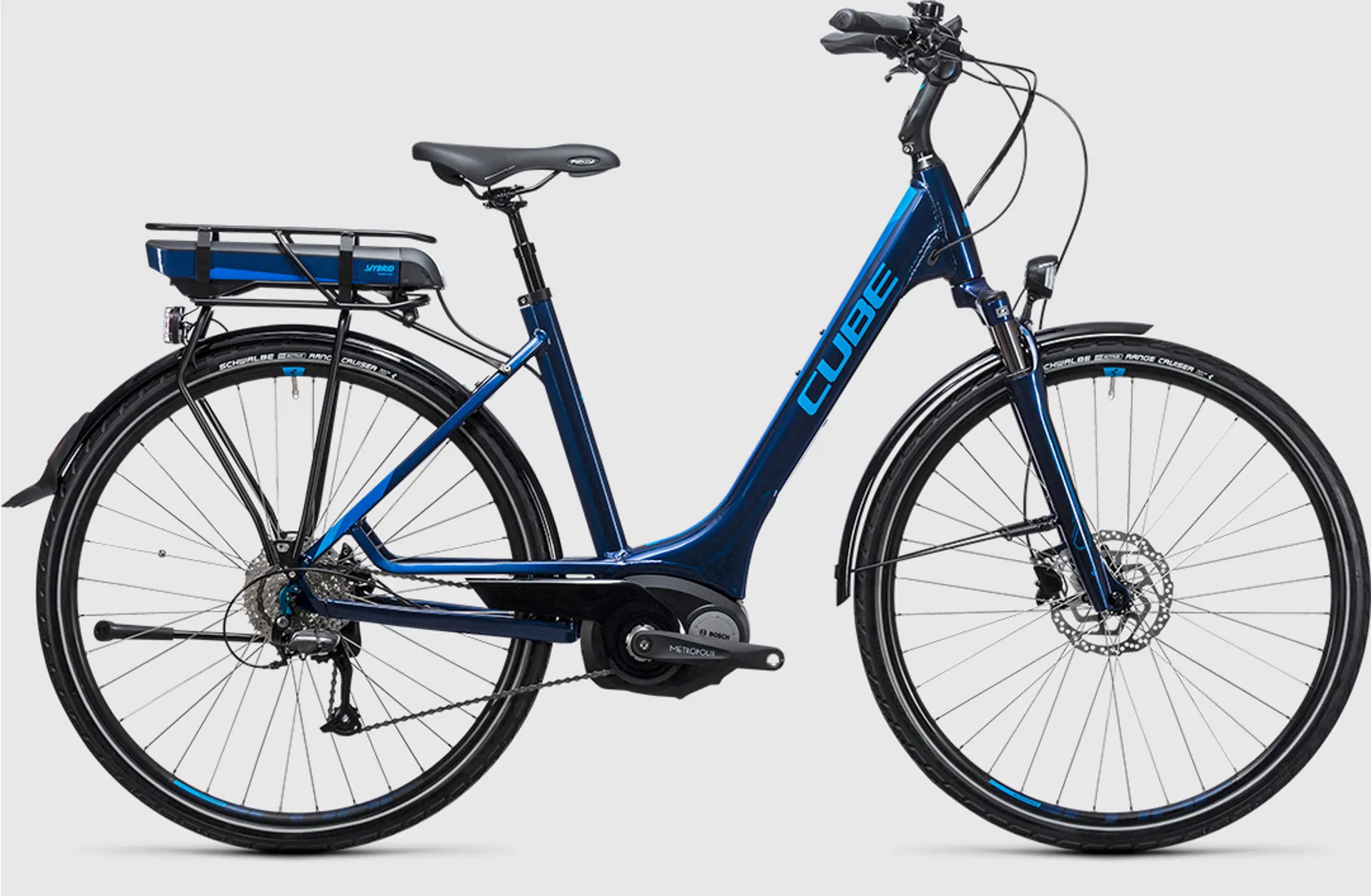 The specially developed CUBE frame is extremely stiff, stable and light thanks to its double chain stays, a down tube produced using Advanced Hydroforming technology and a double chamber seat tube. It was also designed with the demands of the Bosch Drive in mind. Efficient Comfort Geometry provides a superbly ergonomic ride position for long rides and efficient pedalling. Semi-integrated cable routing protects cable runs, improves gear shifting performance, reduces maintenance requirements and even improves the bike's appearance. And with Cube's Frame Safe system, it's easy to replace the derailleur hanger if it gets accidentally damaged.