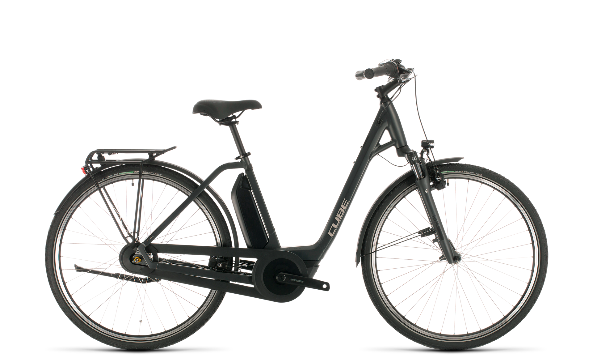 The Town Hybrid ONE Bosch e-bike has been designed to make your life easier. The elegant Easy Entry frame, easy-to-use Shimano 7-speed hub gears and smooth, powerful Bosch drive unit will deliver you from A to B almost effortlessly and in complete safety. The cunningly sited battery is tucked out of the way, while a completely enclosed chain and included mudguards help to keep your clothes clean and dry while you ride. The luggage carrier is perfect for bringing your essentials with you, there's a kickstand for park-anywhere convenience and an included lighting system ensure you can see and be seen at all times of day. Cube even included a comfortable suspension fork to help smooth out rough road surfaces. The frame bristles with neat design features like internally routed gear cables which reduce clutter and maintenance requirements, and Comfort Ride Geometry, for stable and intuitive handling. It's passed all the stringent in-house safety tests with flying colours, so you can be assured that it's more than strong and durable enough to withstand the rough and tumble of everyday life. Just jump on and ride. It'll fit so easily into your life and you'll wonder how you ever managed without it.