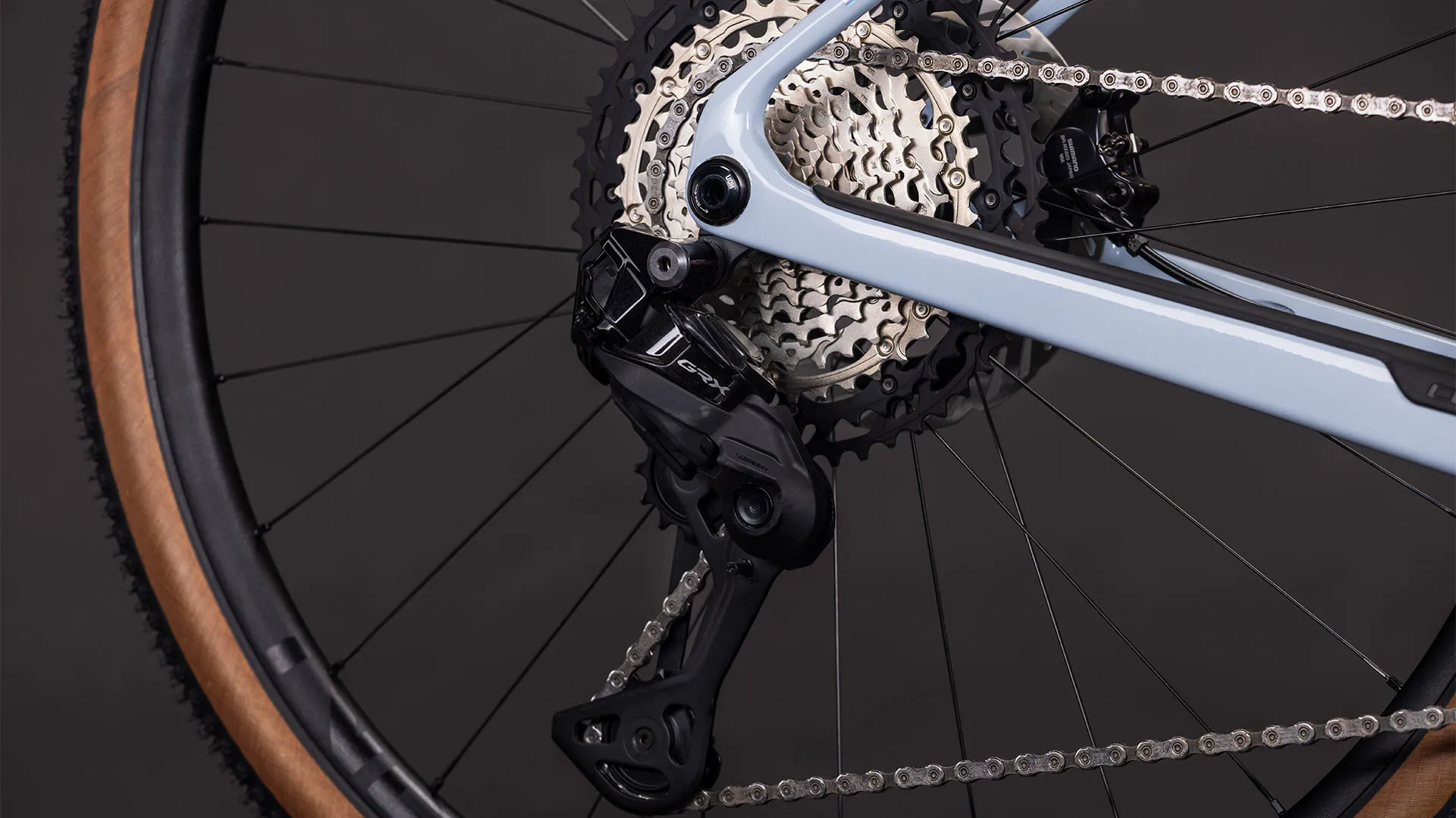 - Shimano GRX Di2 1x12 electronic drivetrain for precise, durable shifting