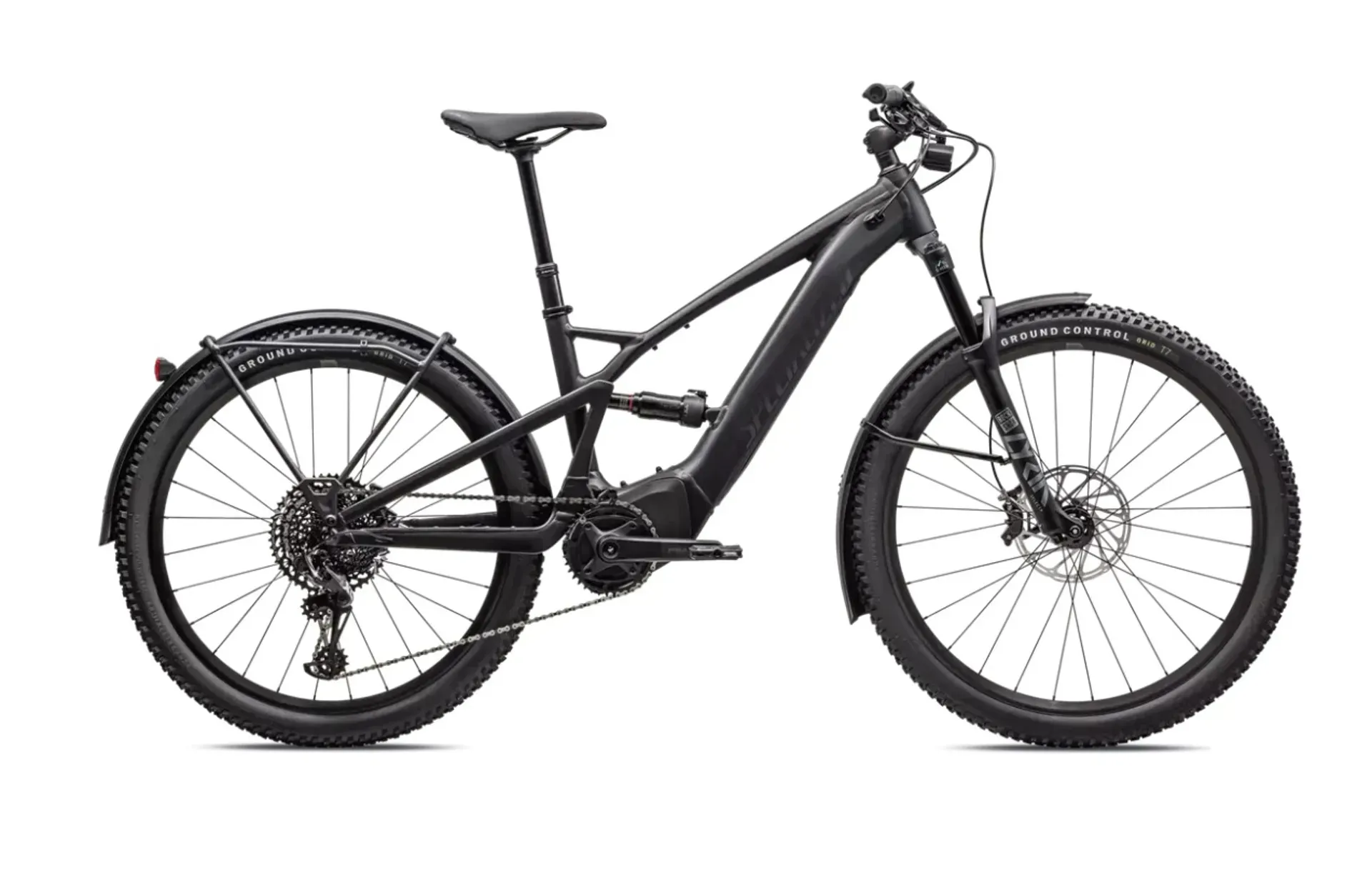 E5 Aluminum, full suspension, mullet style for M-XL, bottom bracket motor mount, fully integrated & lockable downtube battery, internal cable routing, lock and front rack mount