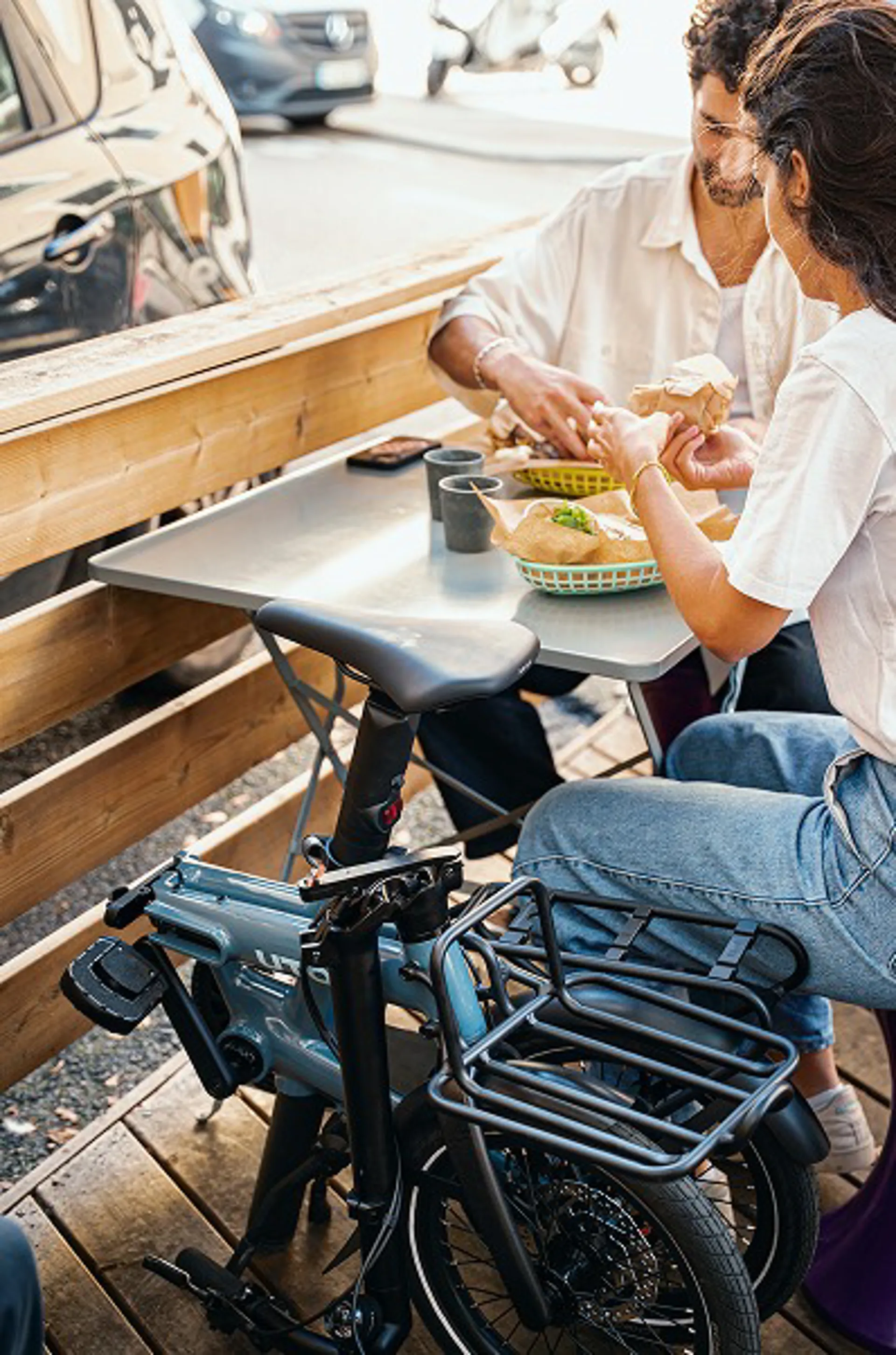 An integrated ABUS anti-theft battery lock keeps your power source secure, and the frame design prevents any part of the bike from touching or scratching during folding. Thru-axle dropouts make wheel removal simple and give the bike a clean, modern look.