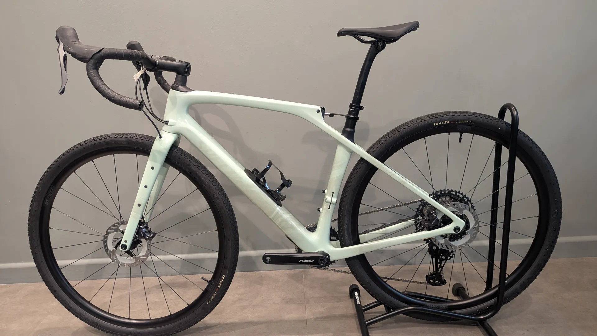 The Diverge STR Comp features a FACT 11r carbon frameset equipped with front and rear Future Shock suspension. It’s built with Shimano's new GRX820 groupset for quick, efficient shifting and a 10-51 cassette to tackle any ride. The bike rolls on DT G540 wheels fitted with 42mm Tracer Pro tyres. Adventure Gear alloy handlebars, an S-Works carbon seatpost, and Power Sport saddle complete the package, making the Diverge STR the most capable Diverge yet.