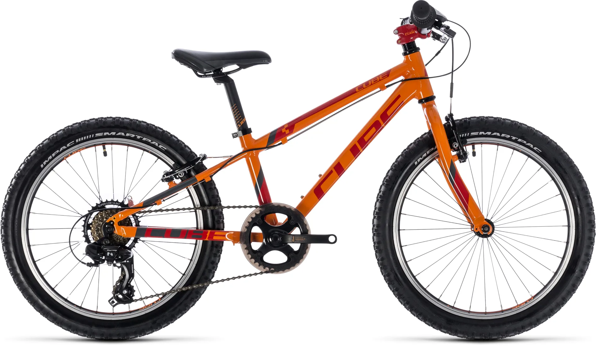 The heat-treated 6061 aluminium frame has the same quality and durability as a full-size mountain bike and is as light as Cube engineers can make it, thanks to a curved and formed down tube specifically designed for kids. Because accidents can happen while they're pushing their boundaries, the derailleur hanger has been made easily replaceable. Just like a real mountain bike, the frame is equipped for v-brakes front and rear - and a choice of colours means there's a Kid 200 to suit every young rider.