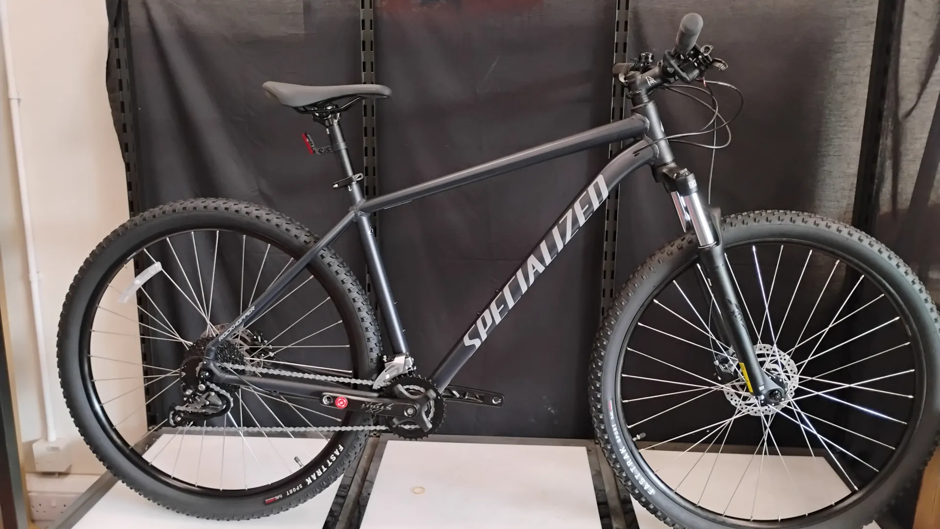 Specialized A1 premium butted alloy, zero-stack head tube, internal cable routing, 135x9mm forged dropouts, chainstay-mounted disc brake, replaceable alloy derailleur hanger, stealth rack mounts, dropper post compatible