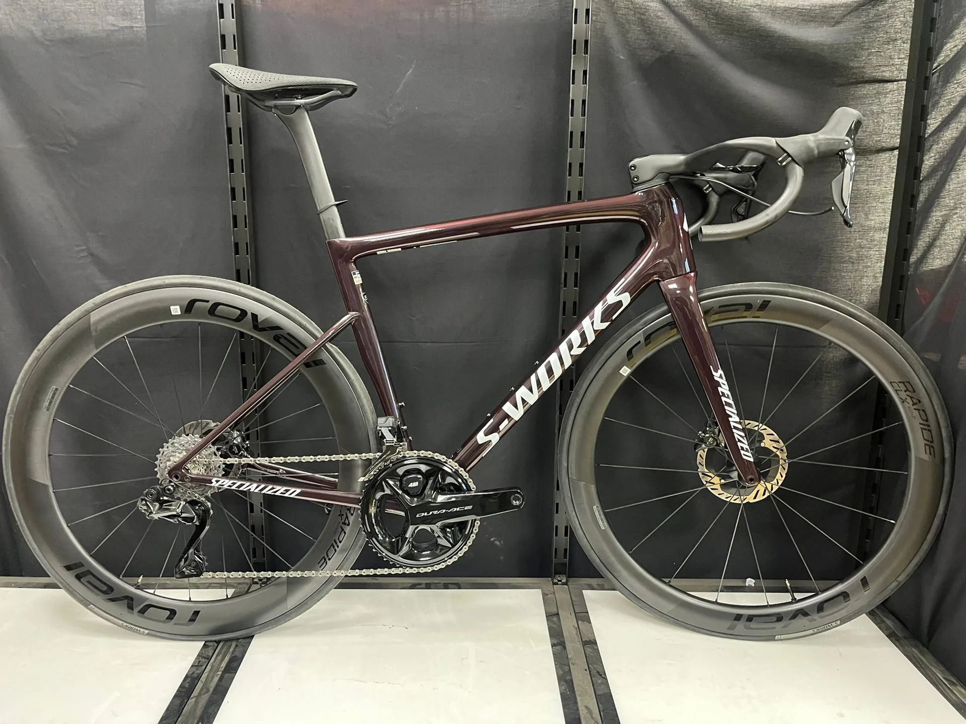 The S-Works Tarmac SL8 comes equipped with the finest components, including a full Shimano Dura-Ace 9200 series Di2 groupset with a dual-sided power meter, and a Roval Rapide CLX II tubeless-ready wheelset. Paired with a Roval Rapide cockpit, this bike is designed for the fastest possible performance and a lightweight edge.