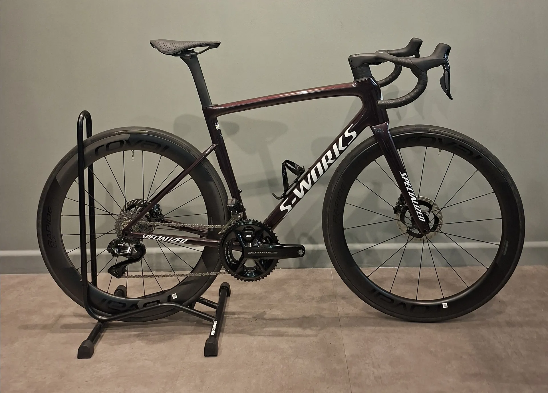 The S-Works Tarmac SL8 comes equipped with the finest components, including a full Shimano Dura-Ace 9200 series Di2 groupset with a dual-sided power meter, and a Roval Rapide CLX II tubeless-ready wheelset. Paired with a Roval Rapide cockpit, this bike is designed for the fastest possible performance and a lightweight edge.