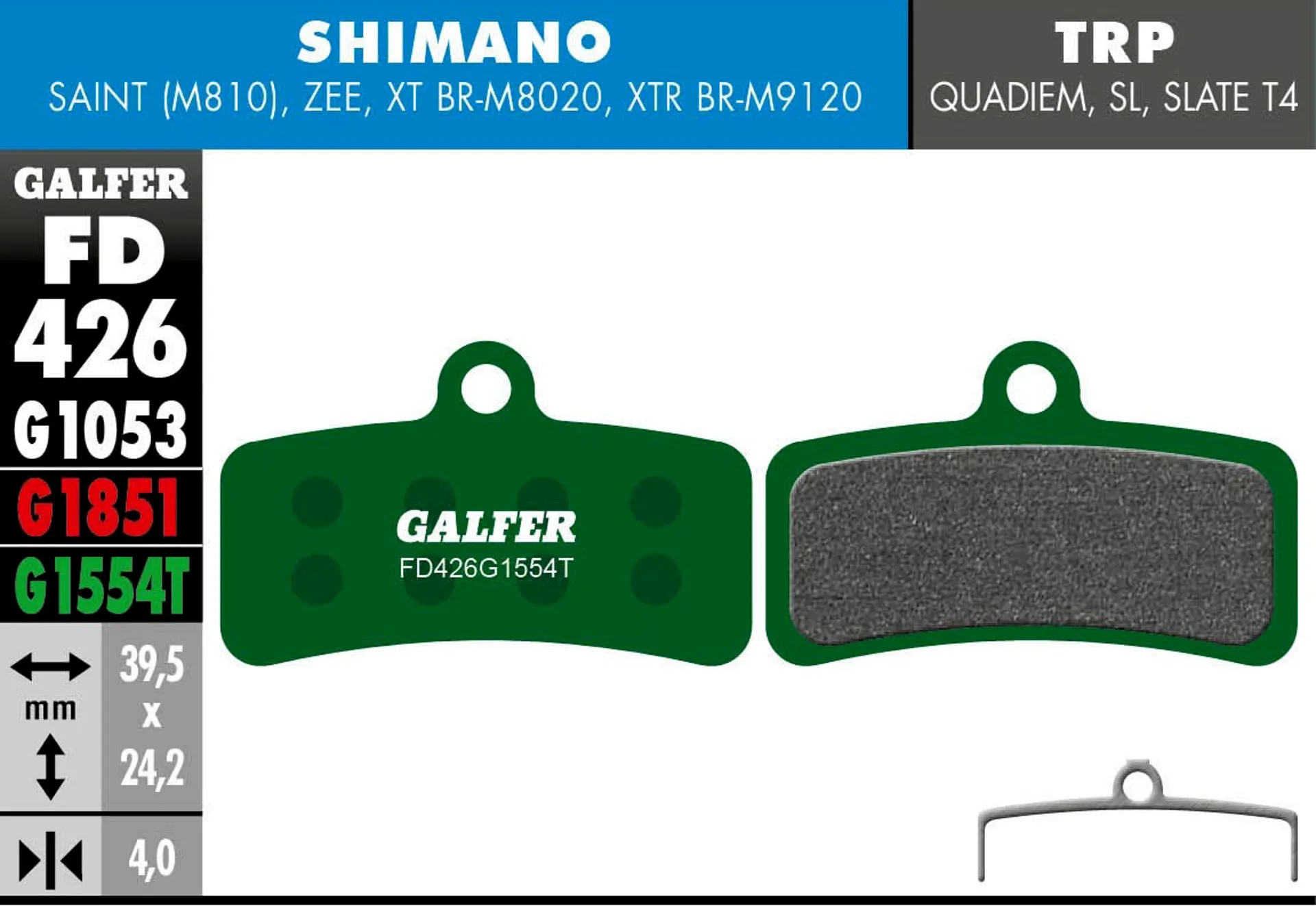 The Galfer Pro Disc Brake Pads Shimano Saint/Zee/TRP DHR/Quadiem/Slate are built for speed, control, and reliability. With maximum stopping power and fade-free consistency, they give you the confidence to tackle the steepest trails, roughest descents, and fastest race runs.