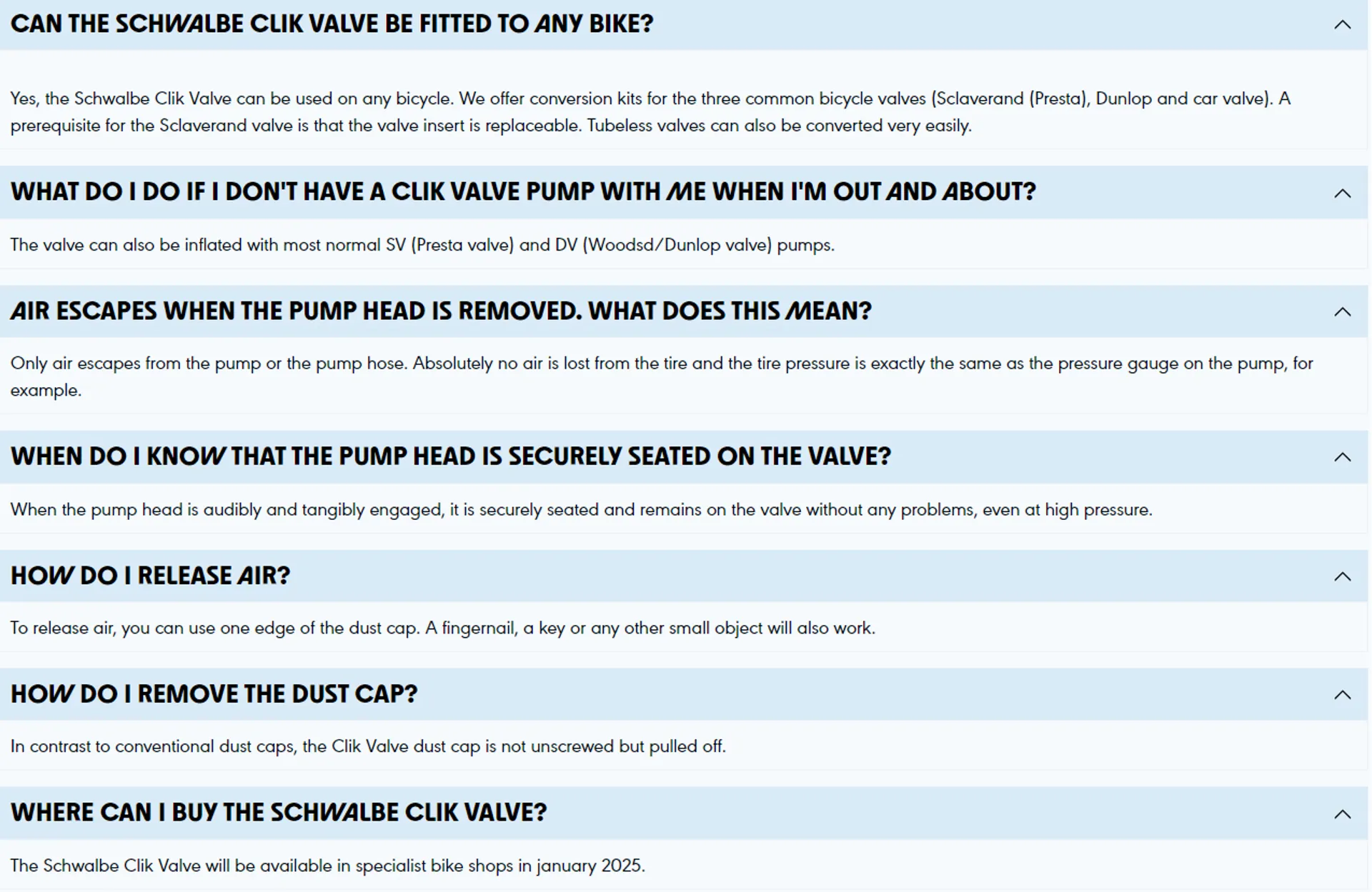- Schwalbe Clik Valve Presta valve conversion kit with pump head